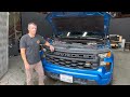 The huge air filter and tube produce a more aggressive sound than stock. Click the play button to listen from outside and inside the cab.