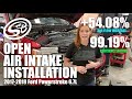 We swapped the location of the air intake and battery, allowing our intake to not only be closer but also directly in line with the front air inlet. Additionally, our intake tube has minimal bends as it connects to the turbo inlet. These details result in a significant decrease in restriction compared to the stock intake.